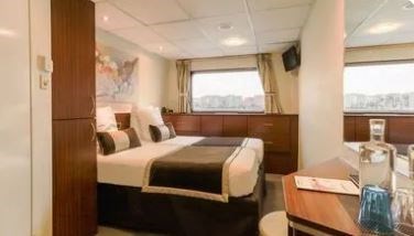 De kajuiten op het hoofddek bieden alles wat u maar kunt wensen: televisie, badkamer met douche en toilet, handdoeken, binnentelefoon, kluis,airconditionin, Wifi